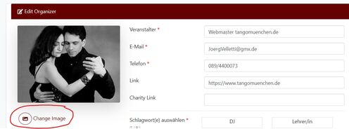 En la página Asistentepuedes editar tu perfil de organizador / entrada.