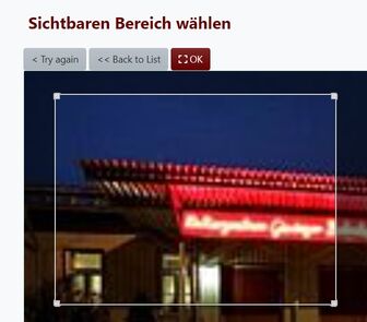 Se mostrará la imagen cargada y podrá especificar qué parte debe mostrarse. La imagen se recortará al formato de imagen estandarizado 3:2 en formato apaisado para mi sitio web. No se pueden seleccionar otros formatos!