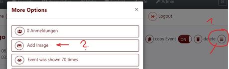 Para ello, primero debe entrar en el evento, después encontrará las opciones en el menú de 3 puntos a la derecha del evento: